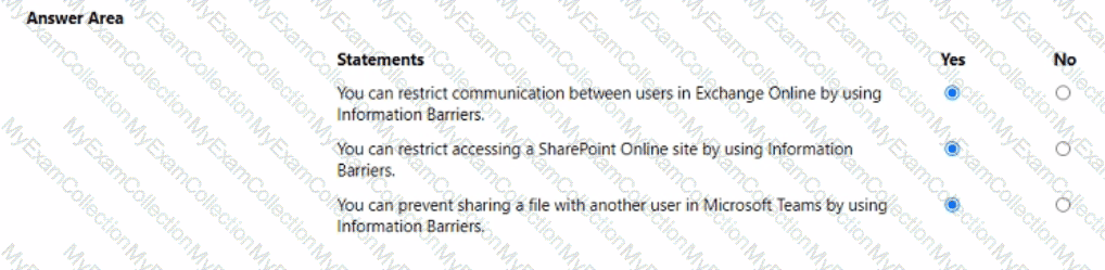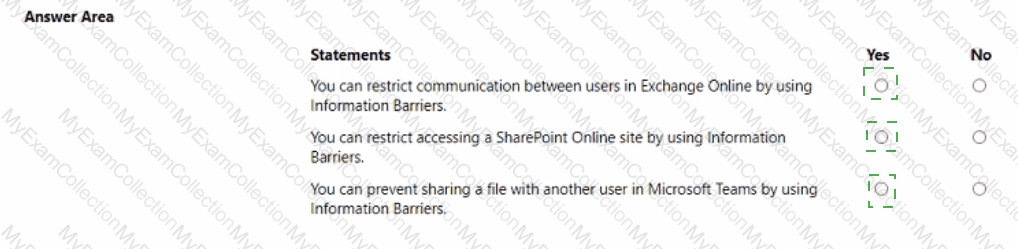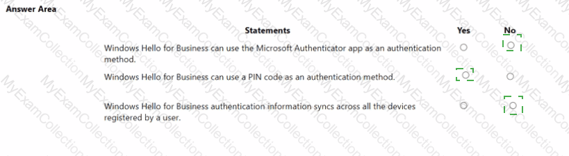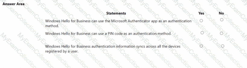 For each of the following statements, select Yes if the statement is true. Otherwise, select No. NOTE: Each correct selection is worth one point.