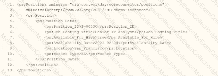 In Workday integrations, Document Transformation (DT) using XSLT with Workday Transformation Toolkit (XTT) attributes is used to transform XML data, such as the output from a Core Connector or EIB, into a specific format for third-party systems. In this scenario, you need to transform the ps:Position_ID field within the ps:Position element to a fixed length of 10 characters, truncate the value if it exceeds 10 characters, and align the output to the left. The template must match the ps:Position element and apply these formatting rules using XTT attributes.