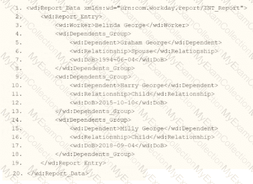 Workday EIB and Web Services Guide: Chapter on "XML and XSLT for Report Data" – Explains the structure of Workday XML (e.g., wd:Dependents_Group, @wd:Relationship) and how to use XSLT to transform dependent data, including attribute-based conditions.